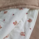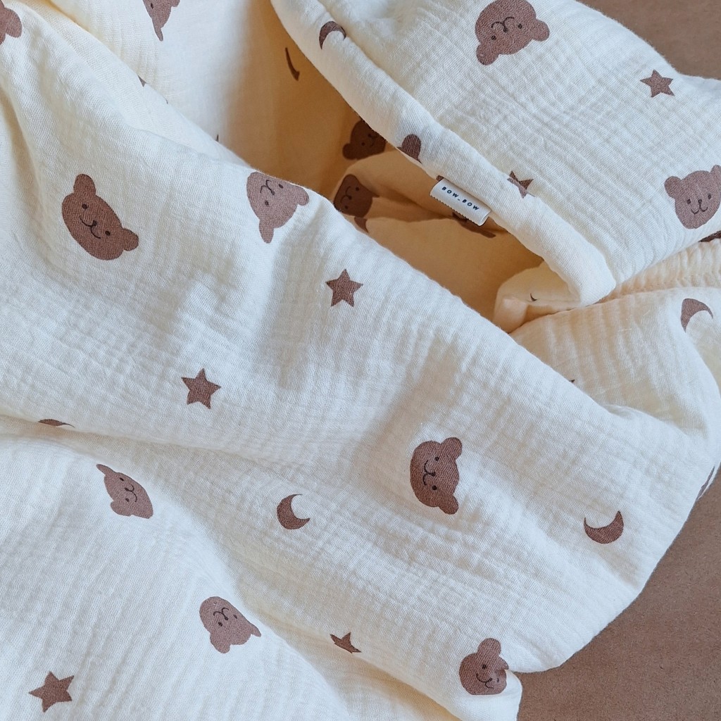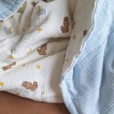 Одеяло муслиновое изготовлено из жатого муслина, между слоями которого утеплитель хупон (100 гр/м²) - мягкий, упругий, воздухопроницаемый, хорошо восстанавливается после сжатия, гипоаллергенный, легко стирается и быстро сохнет, не деформируется внутри изделия.